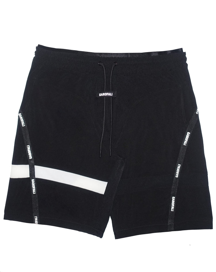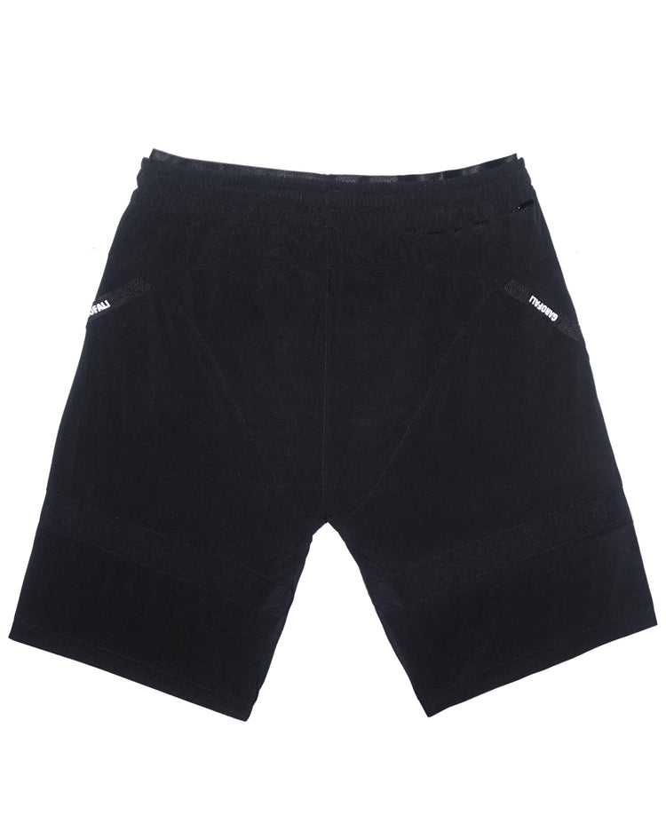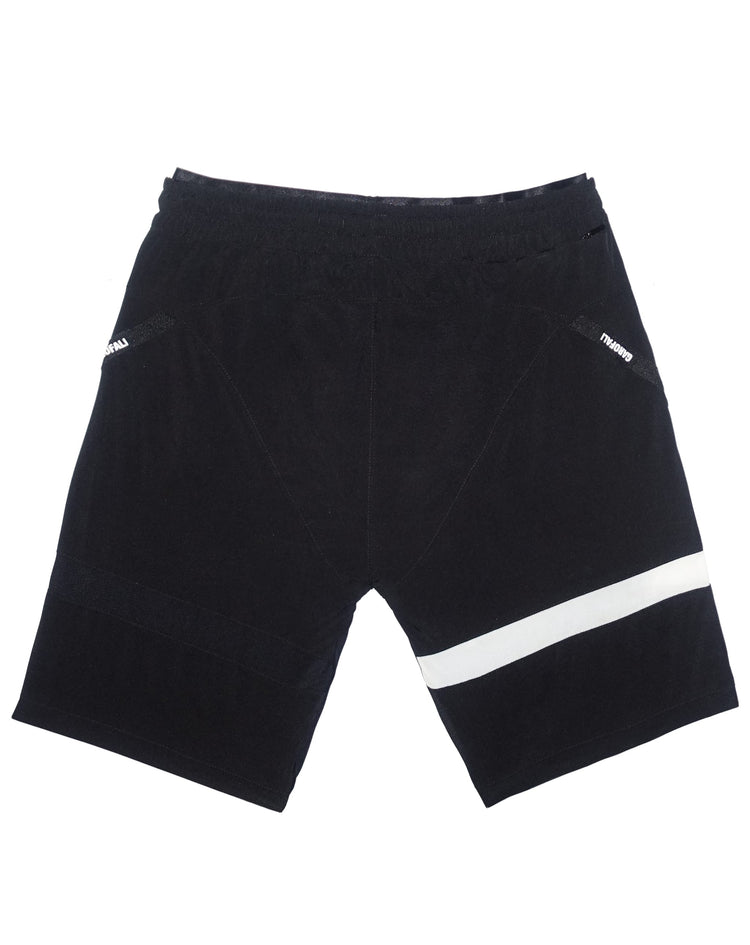 Athletic Shorts in all Black or Black with an Asymmetrical White Accent on Leg.