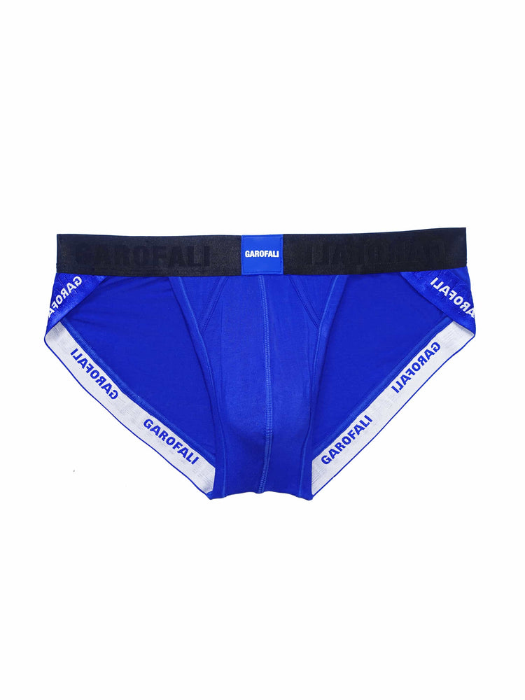 The GAROFALI Split Jock Brief in Blue & Blue/Black w/ a Silicon Logo from the new soft & sustainable Modal Collection.