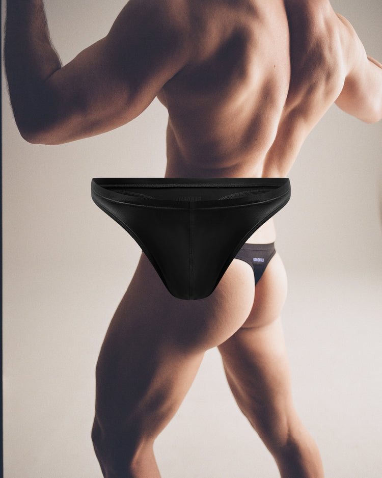The GAROFALI Thong is our most minimal silhouette for a no-show look. Made with a moisture-wicking fabric and a silicon logo on the T-Back. Available in Black with a Blue Logo.